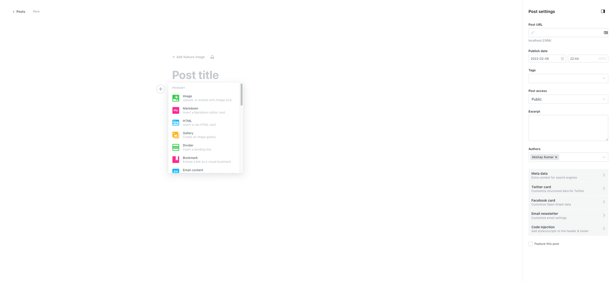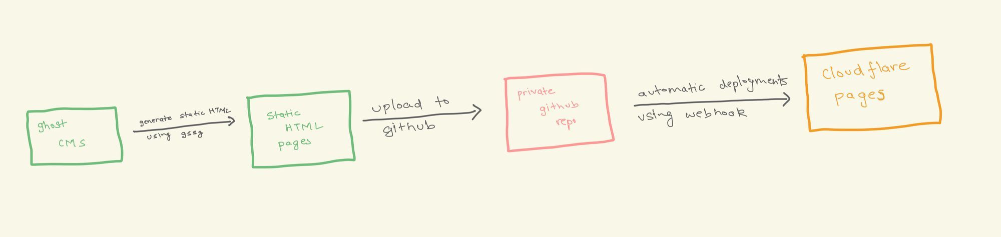 Now, this is where things get a bit interesting. We use something called a CMS (Content Management System) to write and organise content. While traditional CMS (such as WordPress, Joomla or Drupal) remain popular, there has been a shift in using a different way of fetching content called headless CMS (Ghost, Strapi, Contentful). I used Ghost as my CMS provider because of the capability it provides me with to scale my existing solution. I am also in love with its editor. It is simple to use (very similar to Medium's). An additional advantage is Ghost comes with a few handy themes, which you can also directly use. While Ghost also has an online hosted version (ghost pro), I chose to self-host Ghost instance on my mac. The reason for this approach was simply to be able to setup this blog without any overhead subscription fee. As I am very early into this writing journey, I was not comfortable paying the subscription fee every month, not knowing how long I would be writing.