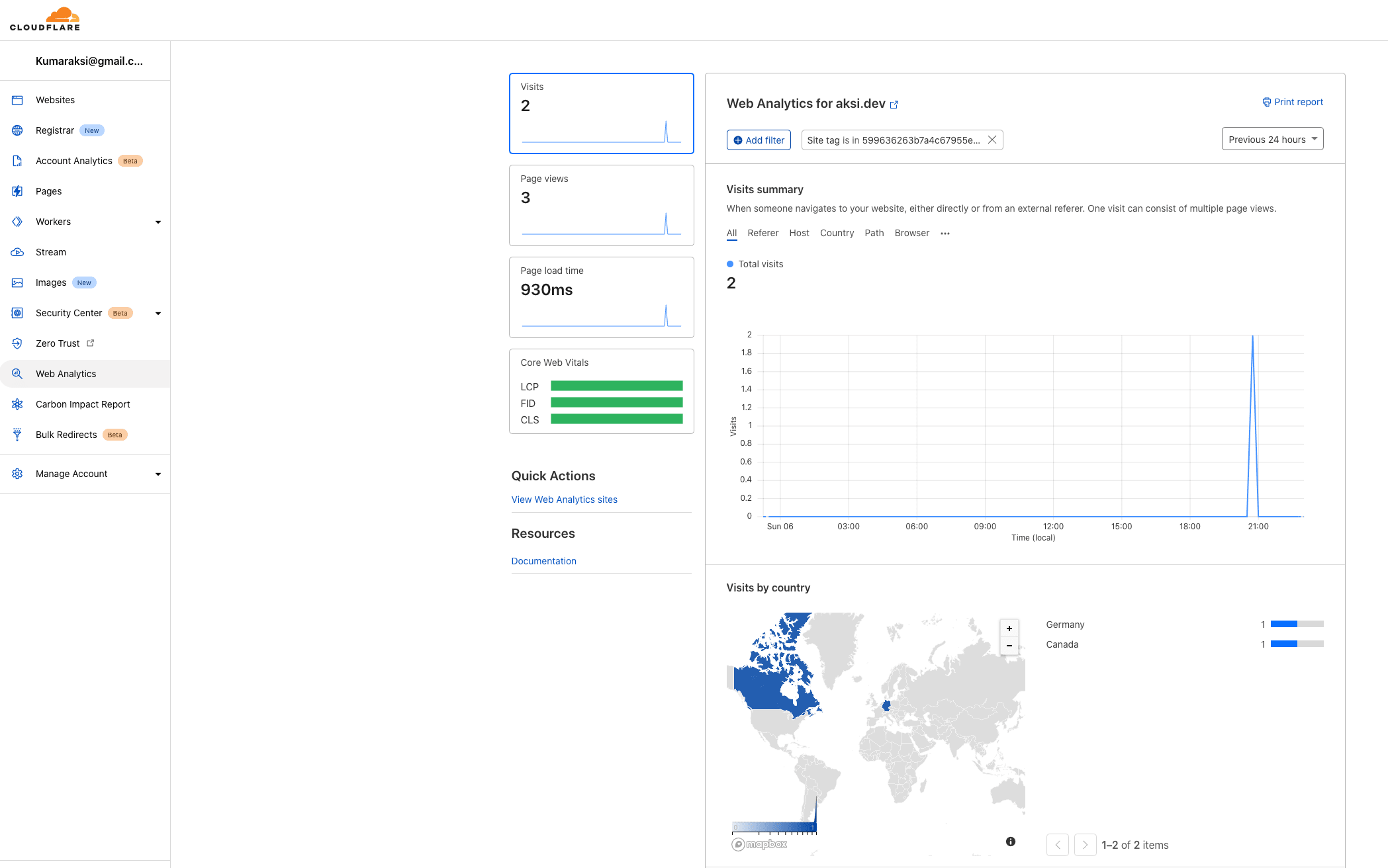 Now in order to serve the static content I am using cloudlflare pages. The reason for using cloudflare pages is that first of all its free for my use case. Second it provides basic analytics and DDOS protection for the website. In future if I decide to add more functionality to the website I would be able to do so using cloudflare edge functions (though at a slight cost)