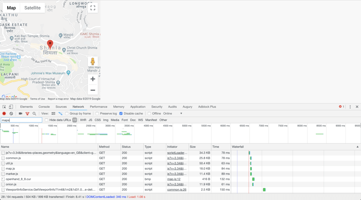 As you can see google maps was loaded after load event. This significantly increases pagespeed as we defer google maps to be loaded to a very later stage, while not compromising with the code reusability.